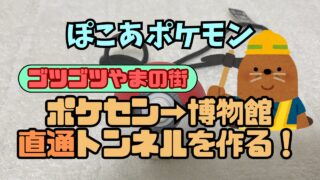 これはぽこあポケモンのゴツゴツやまの街でポケモンセンターから謎の博物館へ直通ルートを作る記事です。謎の博物館に初めて行ったときは遠くまでたどり着いた気分でしたが、トンネルを作ると意外と近かったことに気づきます。