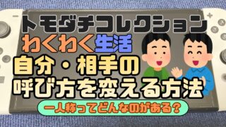これはトモダチコレクションわくわく生活の住人(Mii)たちの呼び方(自分や相手)を変更する方法についてまとめた記事です。世間にどんな一人称があるのかの一覧も作っています。どう呼ぶかでキャラの雰囲気が変わるのでうまく選びたいです。