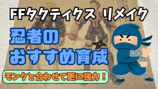 FFタクティクス 【FFTリメイク】忍者のおすすめ育成 ~モンクと組み合わせてより最強~ これはFFタクティクスイヴァリースクロニクルズの忍者に関する記事です。JP稼ぎを頑張ればかなり早くジョブチェンジできます。しかし早すぎると忍者刀がまだありません。いっそ格闘をセットし、素手で戦うのがいいです。 2025.10.11 FFタクティクス攻略情報・まとめ