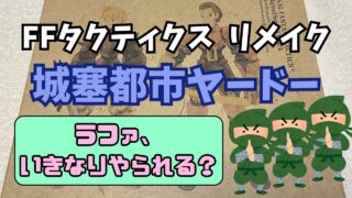 FFタクティクス 【FFTリメイク】城塞都市ヤードー ~ラファ、いきなりやられる?~ これはFFTICの城塞都市ヤードーについての記事です。ここでラファが初登場。敵キャラとしては忍者が初登場。ラファとマラークの専用アビリティは強化されましたが、敵に回すと手強いということでもあります。 2025.10.19 FFタクティクス攻略情報・まとめ